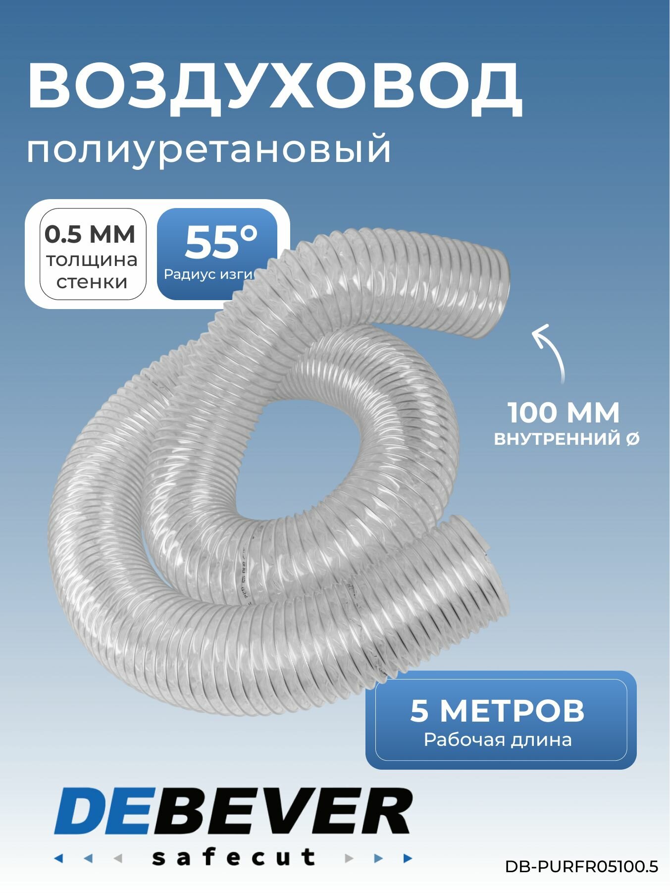 Воздуховод полиуретановый гибкий армированный, 5 метров Debever SafeCut: сравнение цен, характеристики, фото, актуальное наличие и цены.
