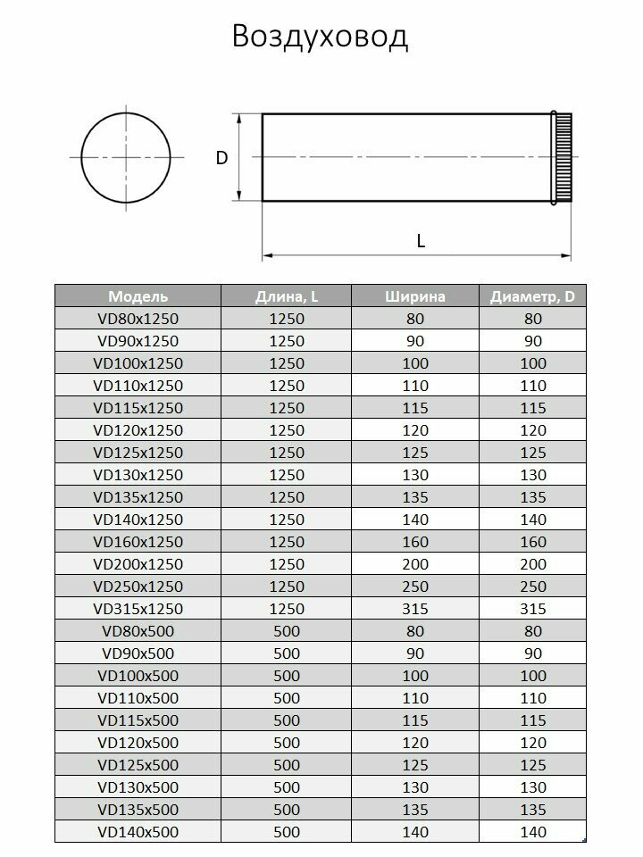 Воздуховод, дымоход или дымовая труба - элемент инженерной системы, используется в приточно-вытяжной системе вентиляции кухни, ванной комнаты, бани, туалета, камина, печи, АОГВ для отвода дыма или создания достаточного воздухообмена, поддерживает оптимальный температурно-влажностный баланс и создает комфортный микроклимат в помещениях. Данный воздуховод отличается повышенной прочностью, так как прямой шов делает его более жестким. Производится из оцинкованной стали толщинаой 0.5 мм. Круглый прямошовный воздуховод имеет меньшее сечение, чем прямоугольный, что делает монтаж более удобным. Прямошовный воздуховод монтируется по системе "один в один" (последующий элемент вкладывается в предыдущий), и поэтому за счет отсутствия необходимости использования соединителей (нипеля) вы получаете балланс цены и высокого качества.