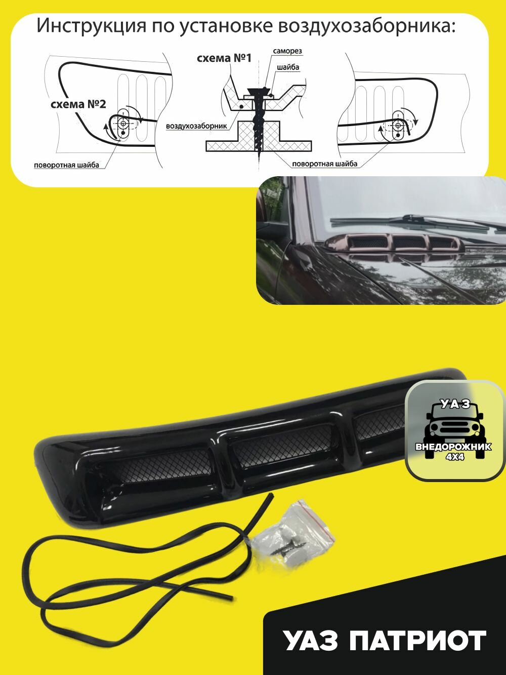 Воздухозаборник УАЗ Патриот с сеткой и крепежом Авантюрин (черный металлик): сравнение цен, характеристики, фото, актуальное наличие и цены.