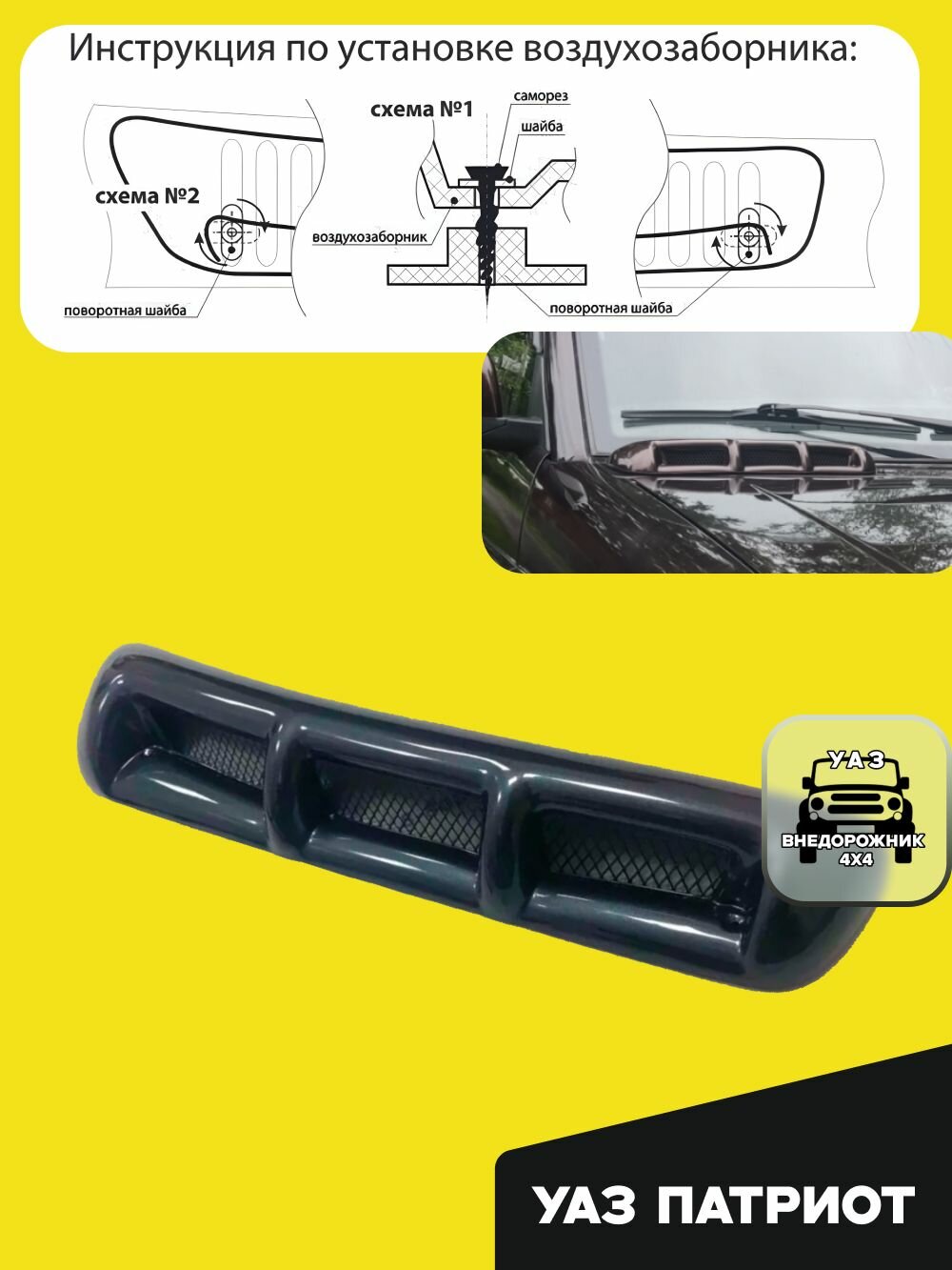 Воздухозаборник УАЗ Патриот с сеткой и крепежом Тайфун (темно-серый металлик): сравнение цен, характеристики, фото, актуальное наличие и цены.