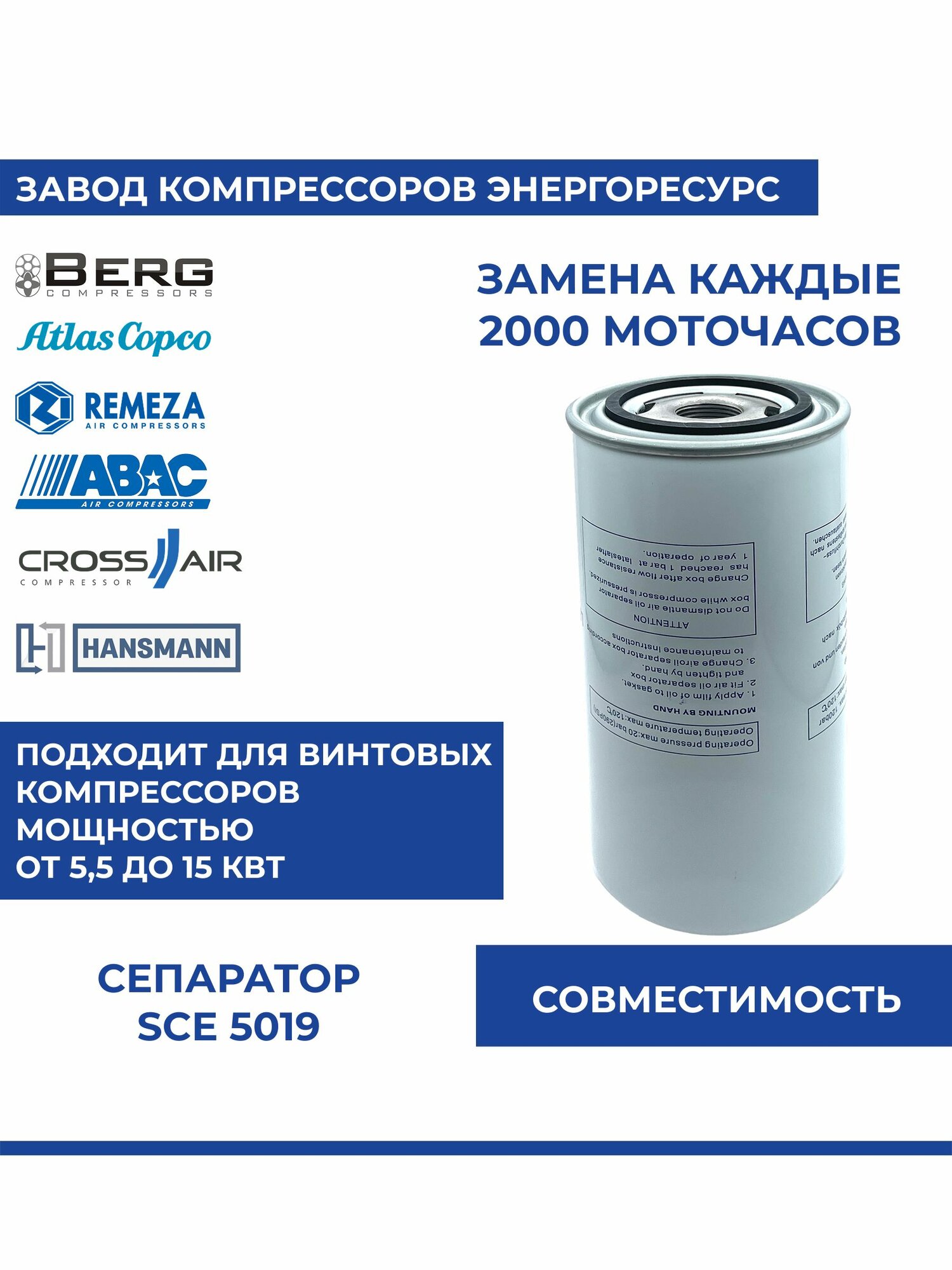 Купить Воздушно-масляный сепаратор SCE 5019 (М24 х 1,75) для винтового компрессора Abac, KRAFTMANN, Boge, Atlas Copco, REMEZA с доставкой по всей России. Воздушно-масляный сепаратор SCE 5019 (М24 х 1,75) для винтового компрессора Abac, KRAFTMANN, Boge, Atlas Copco, REMEZA: сравнение цен, характеристики, фото, актуальное наличие и цены.