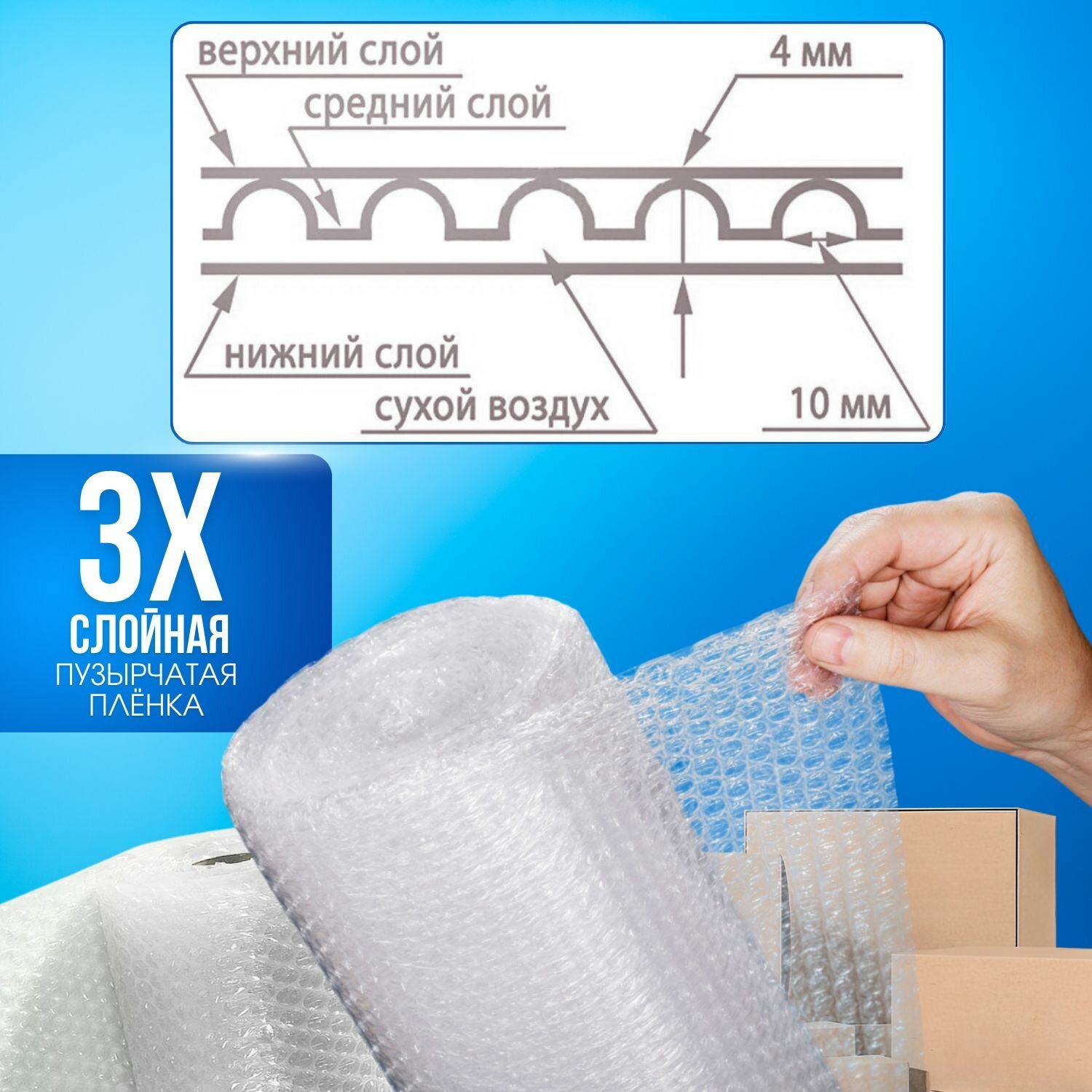 Воздушно-пузырчатая пленка, трехслойная, длина 50м, ширина 60 см, толщина 45мкм: сравнение цен, характеристики, фото, актуальное наличие и цены.