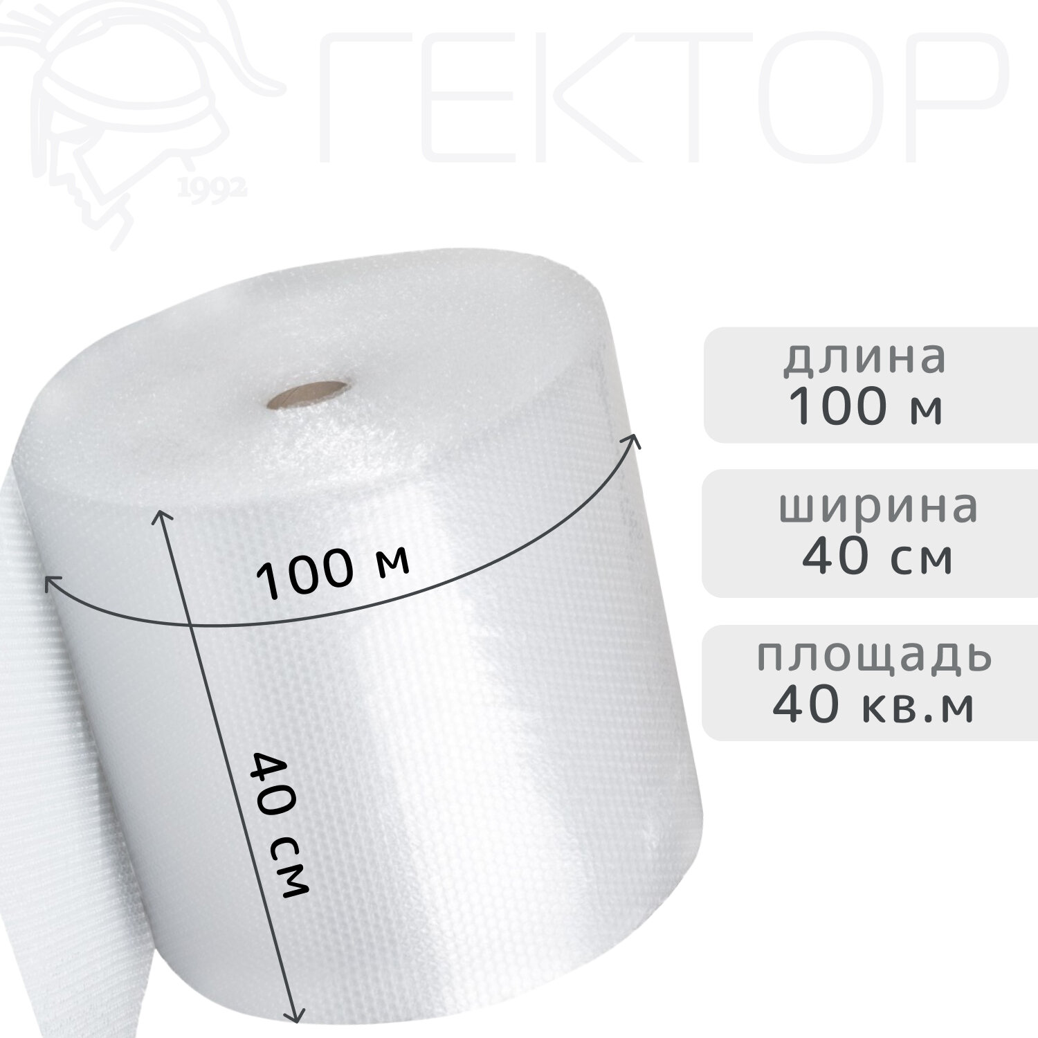 Пленка имеет размеры 0,4м*100м (40 кв. м), что позволяет использовать ее для упаковки большого количества товаров.
