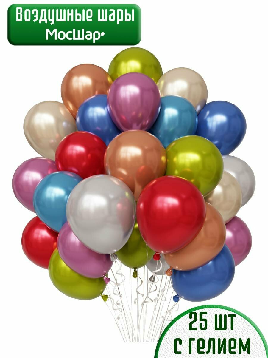 Купить Воздушные шары с гелием (надутые), шарики воздушные разноцветные Мосшар, латексные шары на день рождения 25шт с доставкой по всей России.