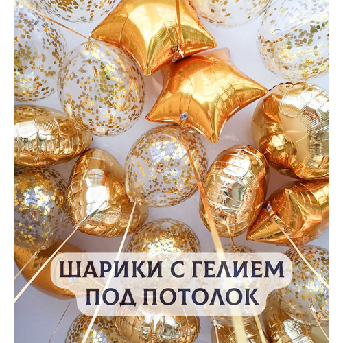 Воздушные шары с гелием под потолок "Золотое ассорти" - это набор из 10 штук, который станет ярким и запоминающимся украшением любого праздника.