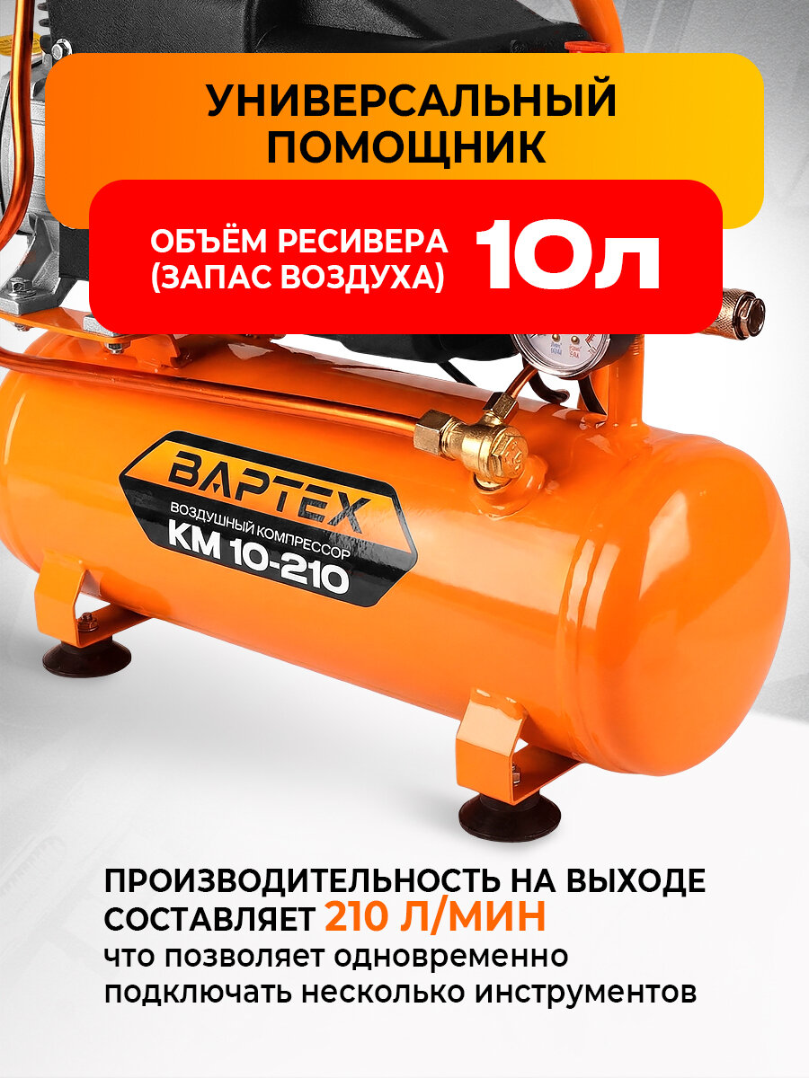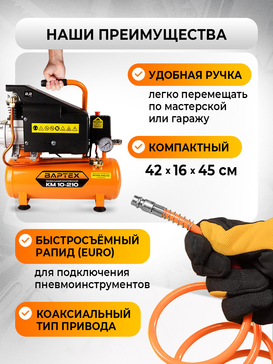 Воздушный компрессор вартех КМ 10-210, поршневой, масляный, 10л, 210л/мин: сравнение цен, характеристики, фото, актуальное наличие и цены.