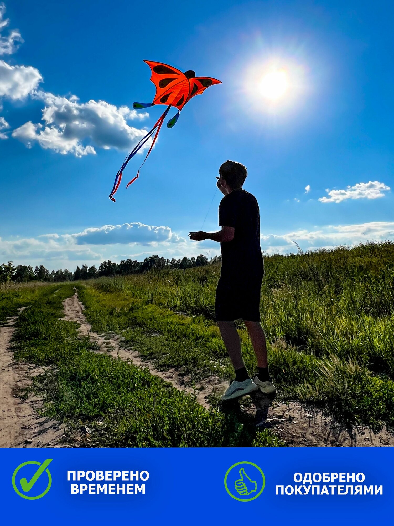 Воздушный змей «Бабочка», 130×80 см с катушкой и леером 50м в комплекте, каркас из стеклопластика: сравнение цен, характеристики, фото, актуальное наличие и цены.
