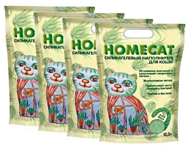 Купить HOMECAT алоэ вера наполнитель силикагелевый для туалета кошек (12,5 л х 4 шт) с доставкой по всей России.