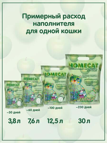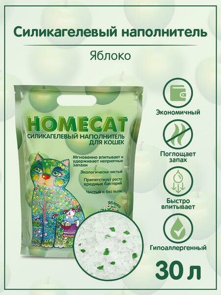 HOMECAT Яблоко 30 л силикагелевый наполнитель для кошачьих туалетов: сравнение цен, характеристики, фото, актуальное наличие и цены.