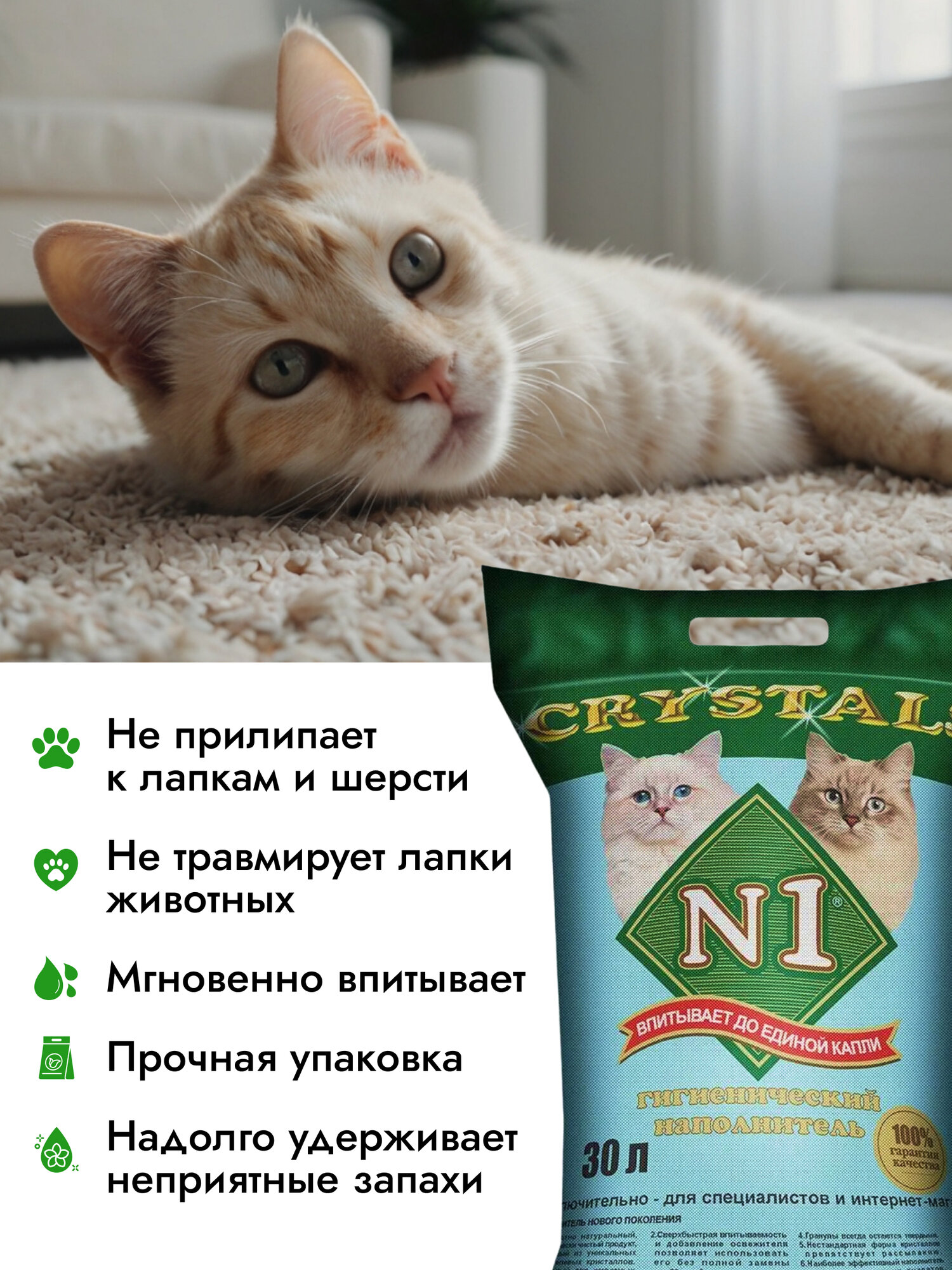 Впитывающий силикагелевый наполнитель N1 CRYSTALS для кошачьего туалета 30л: сравнение цен, характеристики, фото, актуальное наличие и цены.