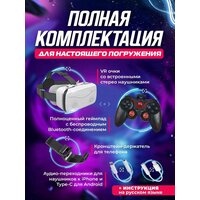 VR-очки Asthetik, для смартфона, джойстик, наушники, кабели type-c и lightning, белые: сравнение цен, характеристики, фото, актуальное наличие и цены.
