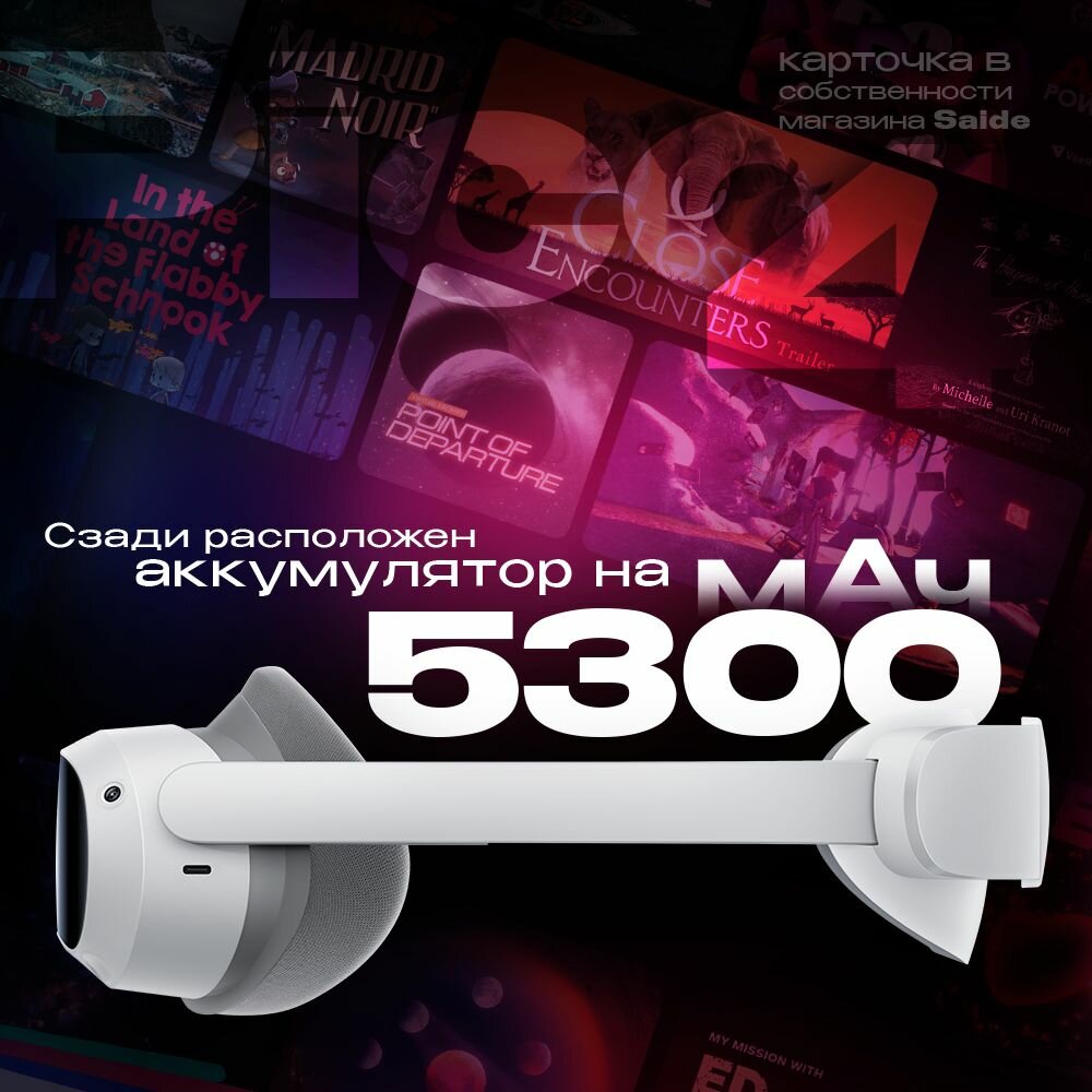 Окунитесь в мир игр виртуальной реальности – ежемесячно в Pico Store выходят крутые бестселлеры игровой индустрии. Теперь погружение будет в разы дольше и эргономичнее: родное крепление пластиковое и имеет сбалансированную массу. Вы можете настроить посадку шлема с помощью колеса на затылке и верхнего ремешка. Сзади расположен аккумулятор на 5300 мАч, которые распределяет вес гарнитуры.