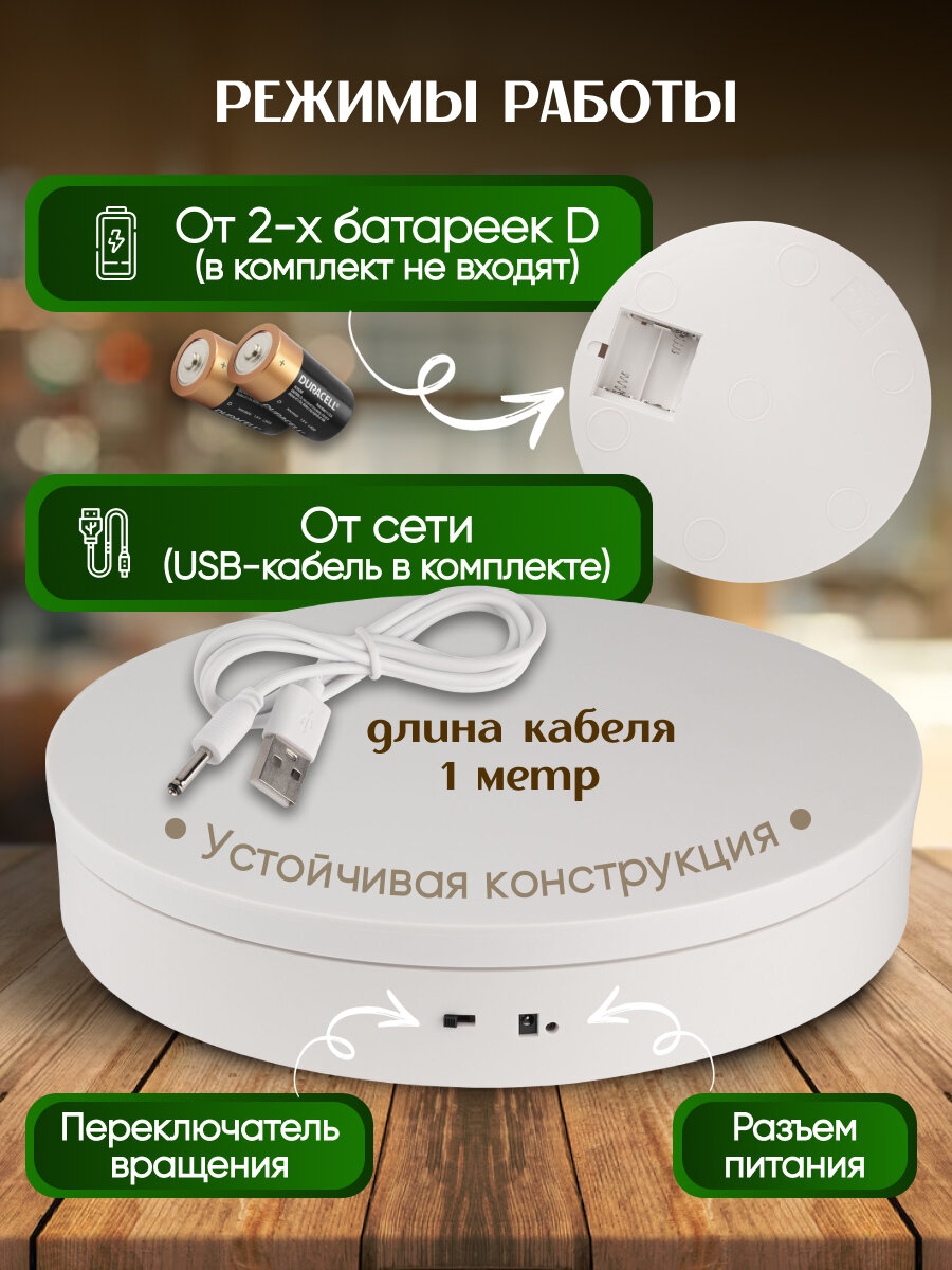 Вращающаяся подставка для предметной съемки 30 см, 360°, с пультом ДУ, белая, макс. нагрузка 15 кг: сравнение цен, характеристики, фото, актуальное наличие и цены.