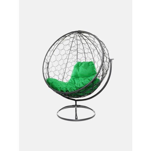 Купить Вращающееся кресло круг с ротангом серое, зелёная подушка с доставкой по всей России.