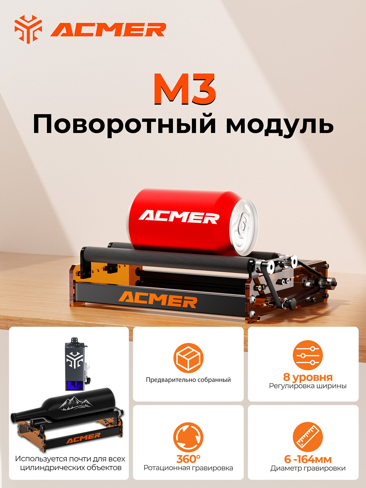 Вращающийся модуль ACMER M3 лазерного гравировального станка используется для цилиндрической лазерной гравировки: сравнение цен, характеристики, фото, актуальное наличие и цены.