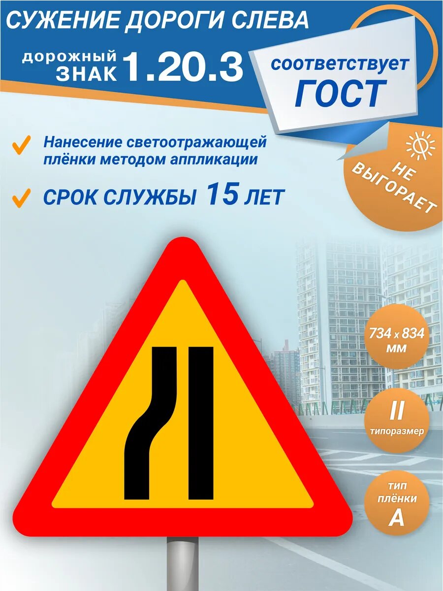 Купить Временный дорожный знак 1.20.3 Сужение дороги с доставкой по всей России. Временный дорожный знак 1.20.3 Сужение дороги: сравнение цен, характеристики, фото, актуальное наличие и цены.