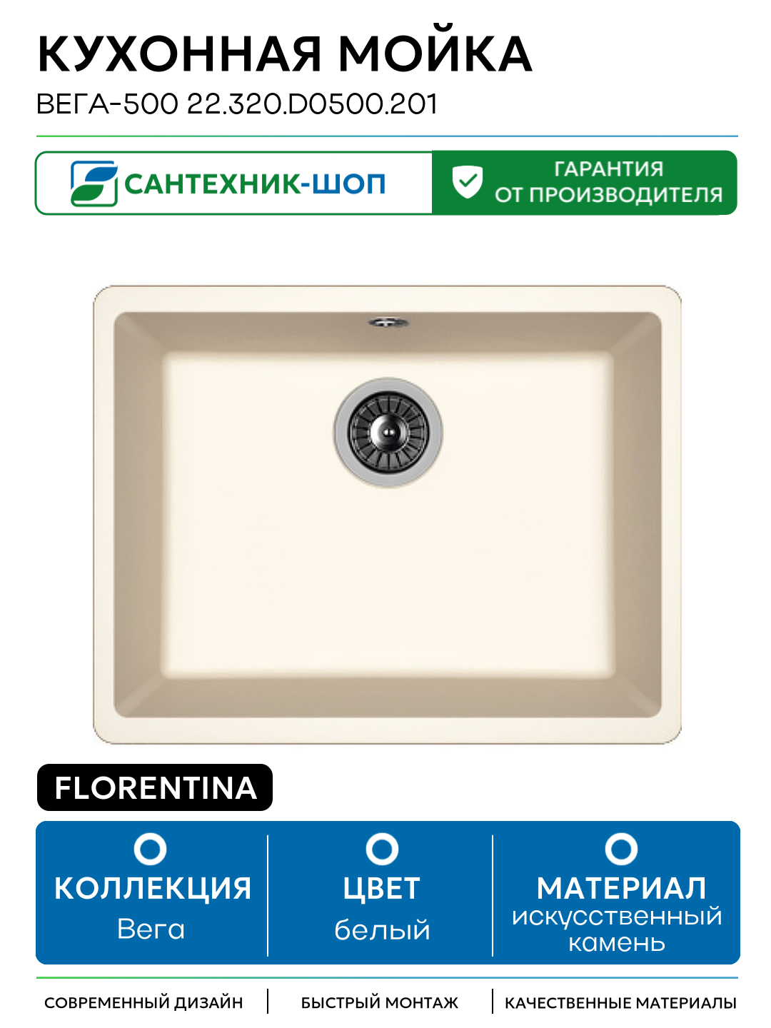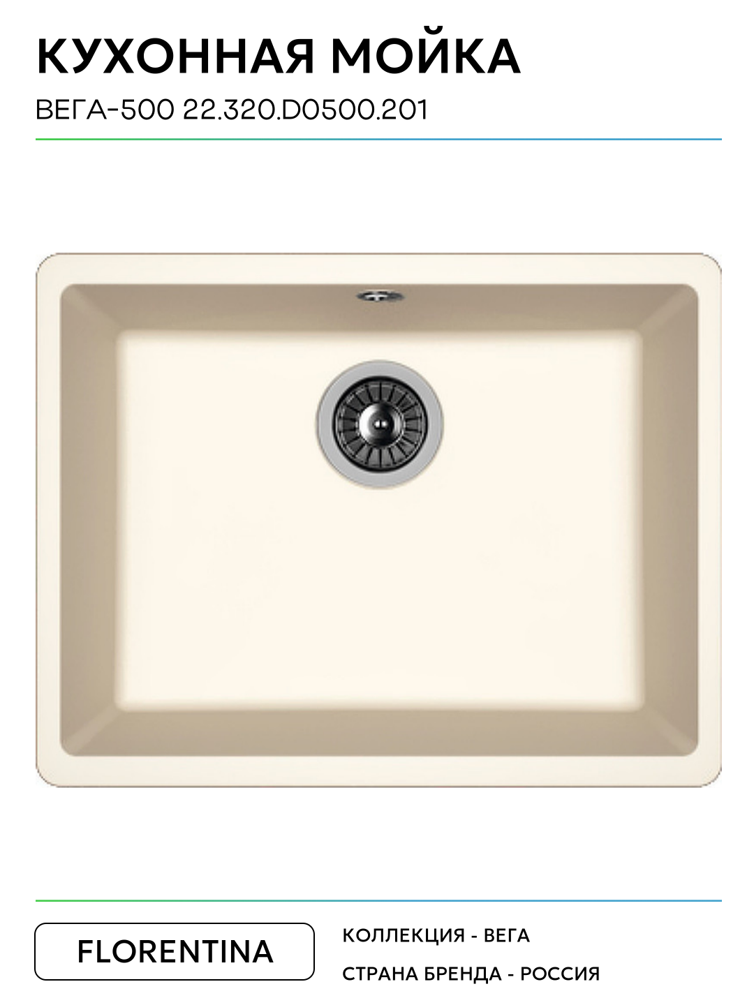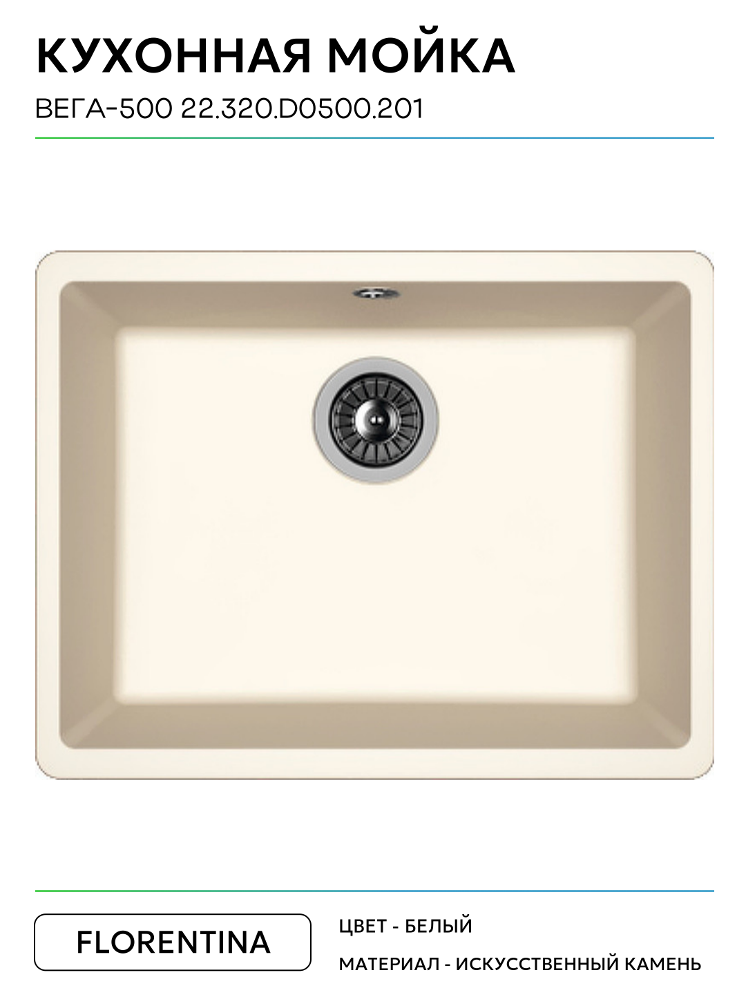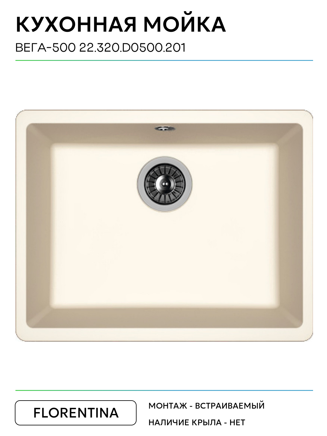 Кухонная мойка Florentina Вега-500 22.320. D0500.201 Жасмин искусственный камень встраиваемый 54 Россия: сравнение цен, характеристики, фото, актуальное наличие и цены.