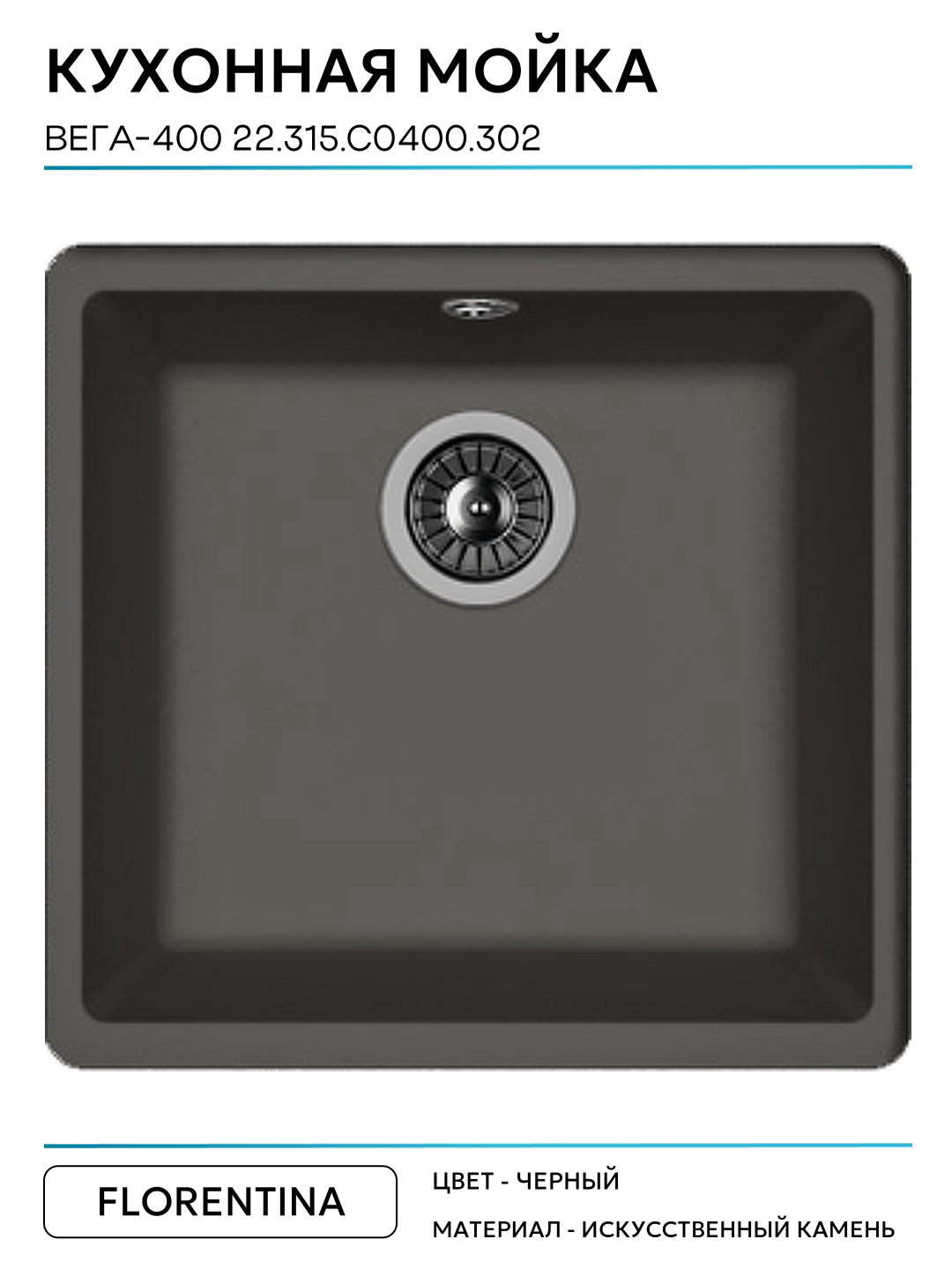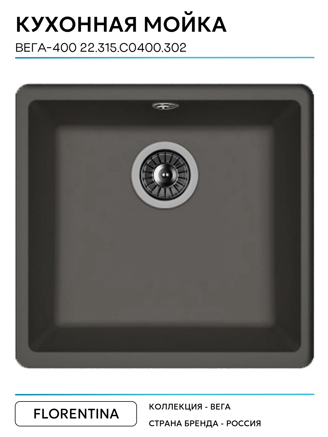 Купить Кухонная мойка Florentina Вега 400 антрацит 22.315. C0400.302 с доставкой по всей России.