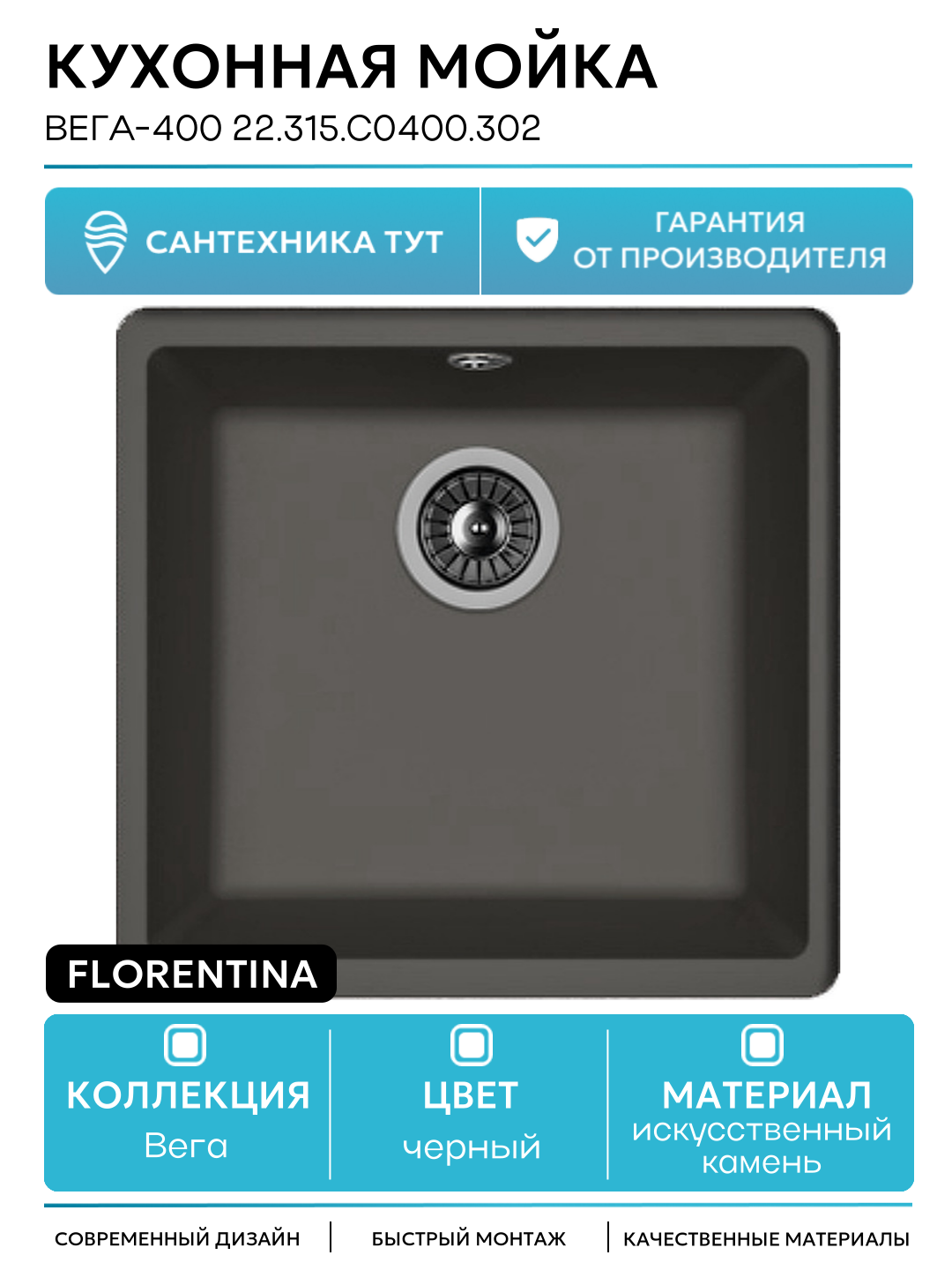 Кухонная мойка Florentina Вега 400 антрацит 22.315. C0400.302: сравнение цен, характеристики, фото, актуальное наличие и цены.