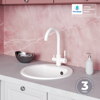 Купить Мойка для кухни каменная POLYGRAN ATOL-460, Белая, Врезная, Круглая (Белый Хлопок) с доставкой по всей России.