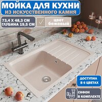 Мойка для кухни из искусственного камня прямоугольная с крылом (73,4×48,3), бежевая: сравнение цен, характеристики, фото, актуальное наличие и цены.
