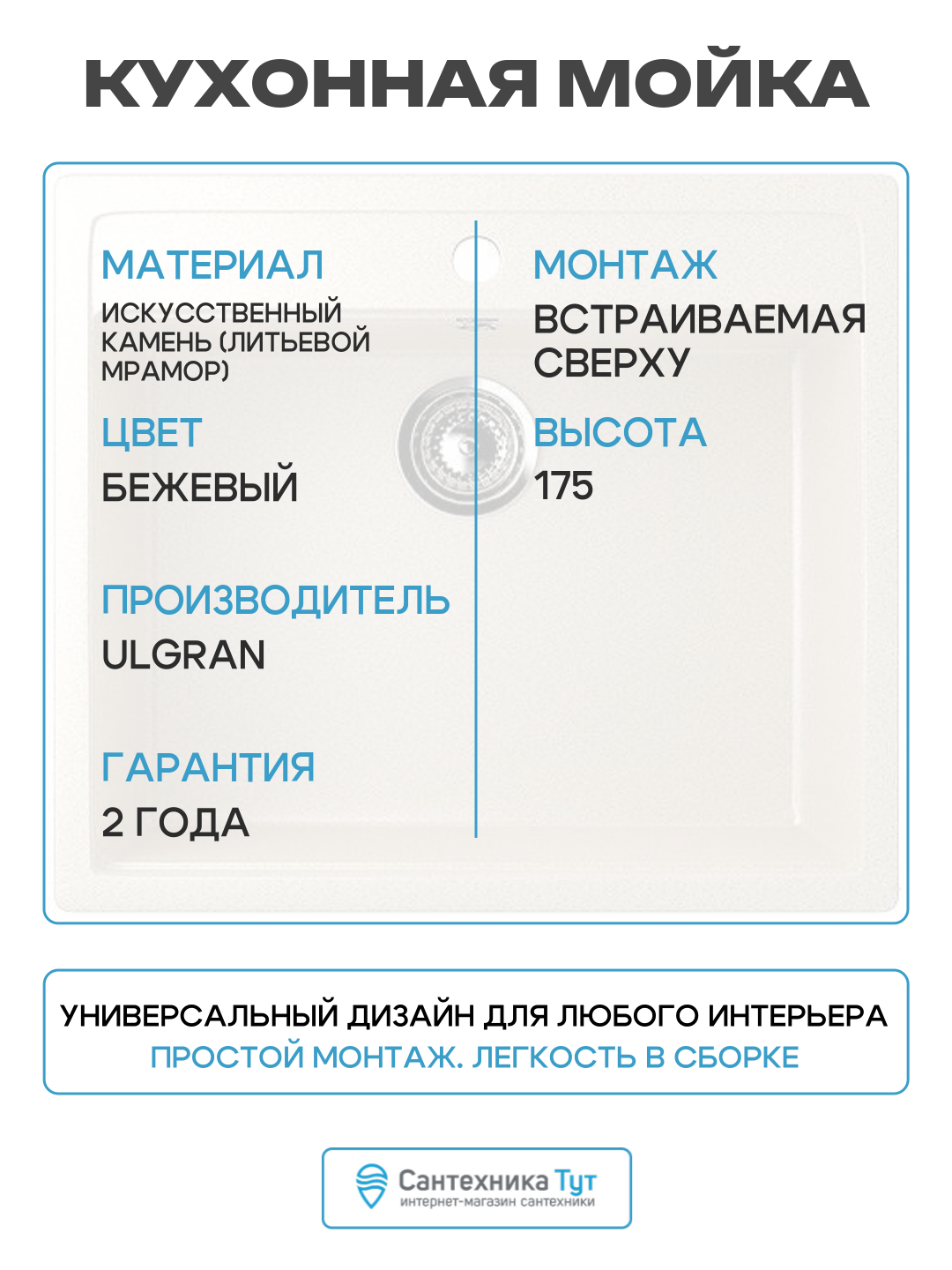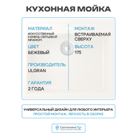 | Дополнительная информация | материал: мраморная крошка/полиэфирная смола состав комплекта: сливная арматура с гофротрубой; диаметр сливного отверстия 90 мм |