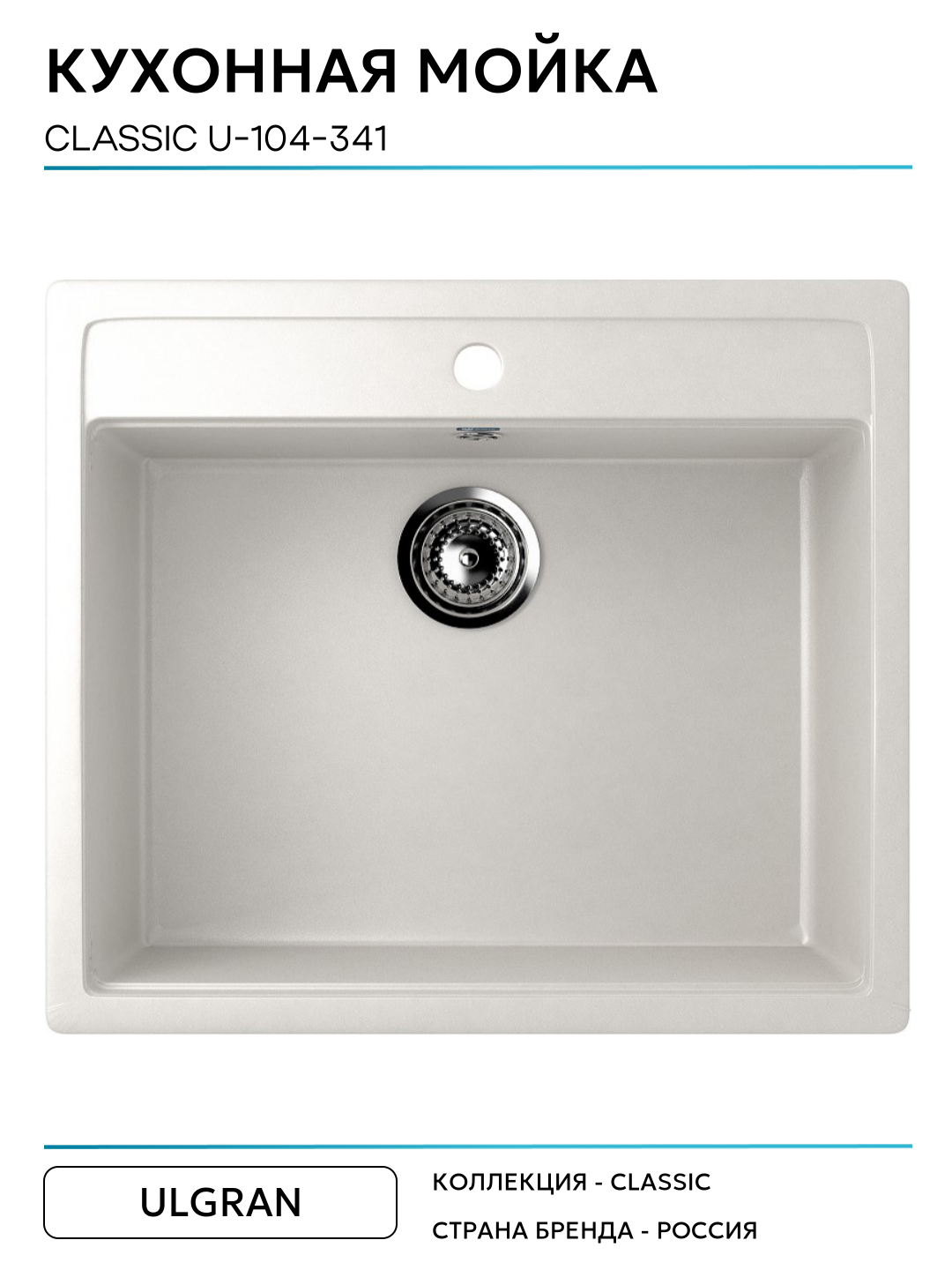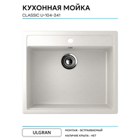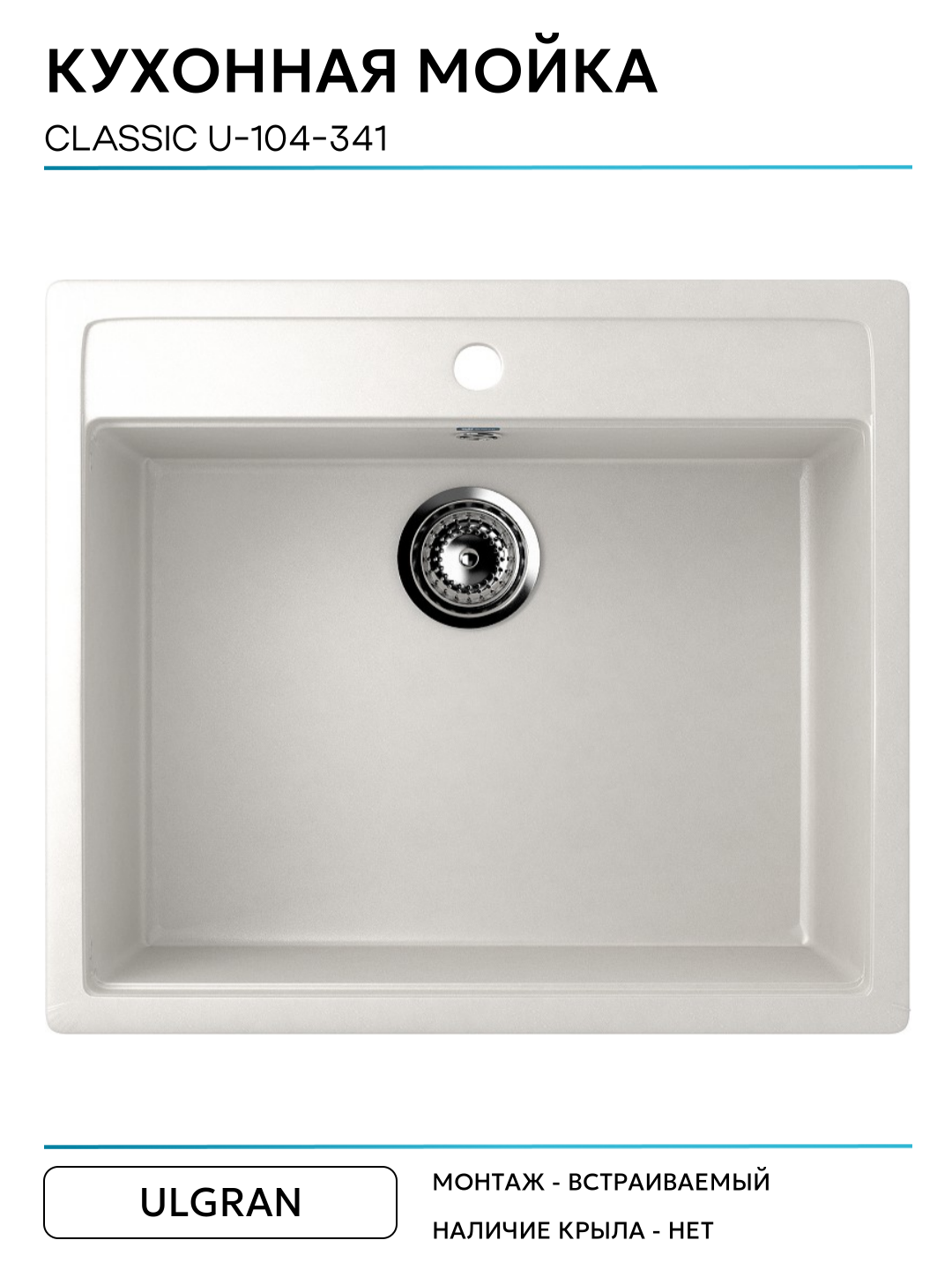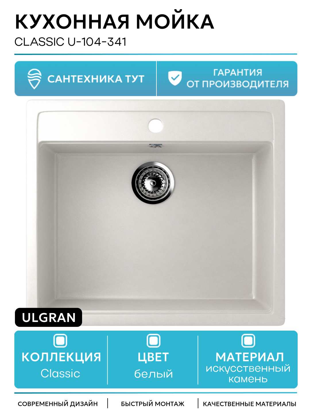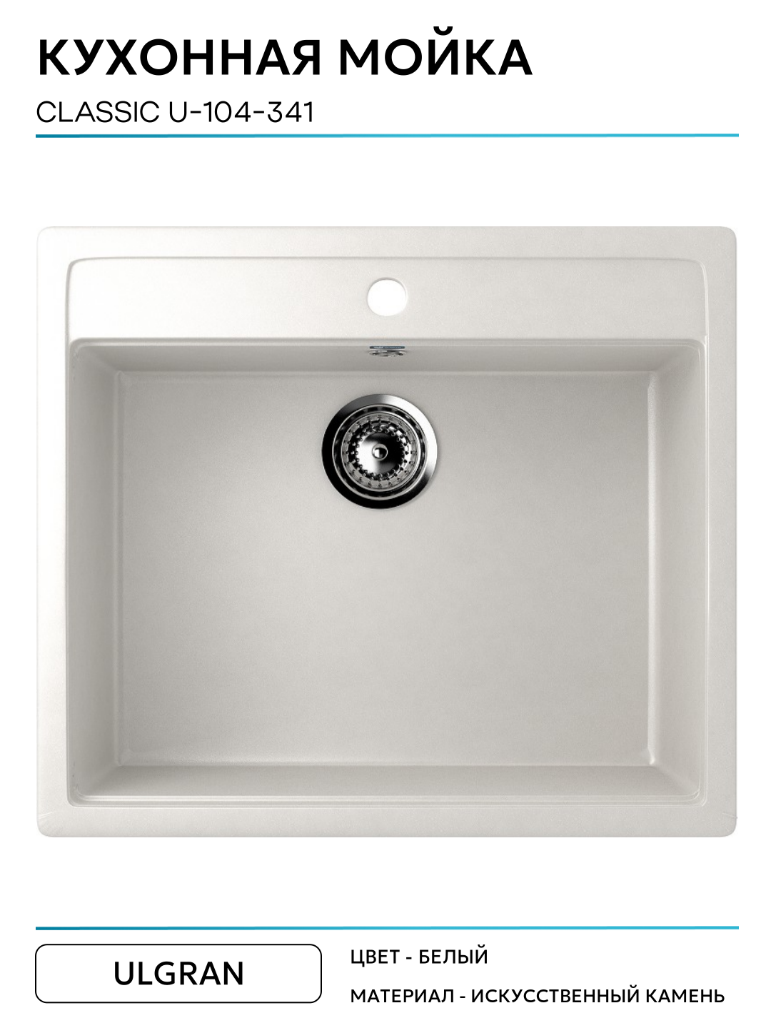 Кухонная мойка Ulgran Classic U-104-341 Ультра-белая искусственный камень встраиваемый 56 Россия: сравнение цен, характеристики, фото, актуальное наличие и цены.