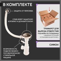 | Дополнительная информация | Комплектация - Мойка - 1 шт. Сифон - 1 шт. Слив-перелив - 1 шт. Корзинчатый вентиль - 2 шт. Инструкция - 1 шт.;Оснащение - сливная арматура/сифон;Страна - Россия;Гарантия - 5 лет;Монтажная длина - 5;Монтажная ширина - 76 |