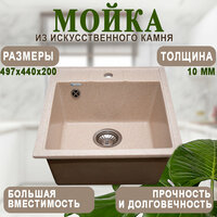 Купить Мойка для кухни мраморная GranAlliance Бежевая матовая прямоугольная 500х440 без сифона с доставкой по всей России.