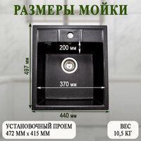 Мойка для кухни мраморная GranAlliance Черная матовая прямоугольная 500х440 без сифона: сравнение цен, характеристики, фото, актуальное наличие и цены.