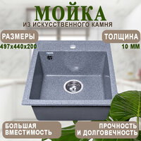 Купить Мойка для кухни мраморная GranAlliance Темно-серая матовая прямоугольная 500х440 без сифона с доставкой по всей России.