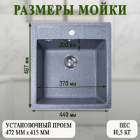 Мойка для кухни мраморная GranAlliance Темно-серая матовая прямоугольная 500х440 без сифона: сравнение цен, характеристики, фото, актуальное наличие и цены.