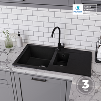 Купить Мойка для кухни каменная POLYGRAN BRIG-870, Черная, Врезная, Квадратная, С крылом, 2 чаши (Черный №16) с доставкой по всей России.