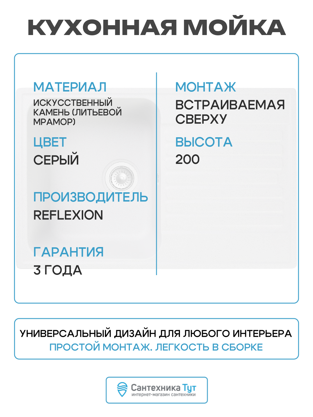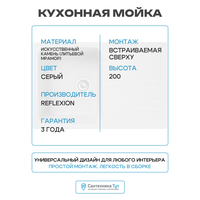внимание! Мойки Reflection поставляются без сифона, что позволяет потребителю самостоятельно подобрать комплектующие, исходя из конфигурации кухни.