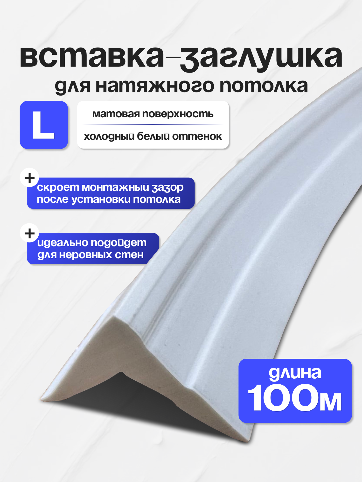 Купить Вставка для натяжного потолка (заглушка) плинтус потолочный L 100м с доставкой по всей России. Вставка для натяжного потолка (заглушка) плинтус потолочный L 100м: сравнение цен, характеристики, фото, актуальное наличие и цены.