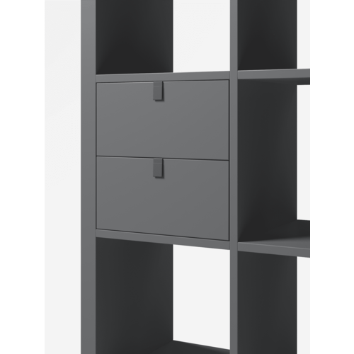 Вставка с выдвижными ящиками RIDDLE BOX - это дополнительная опция к любым моделям систем хранения RIDDLE. Она выполнена в черном цвете, что придает ей стильный и современный вид, подходящий для различных интерьеров, включая модерн, лофт и скандинавский стили.
