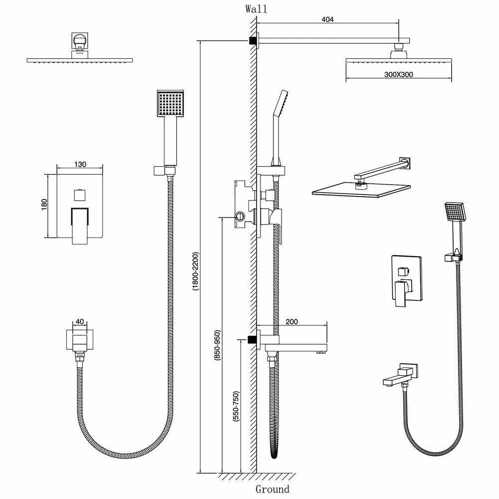 | Высота стойки для душа | 2200 мм |