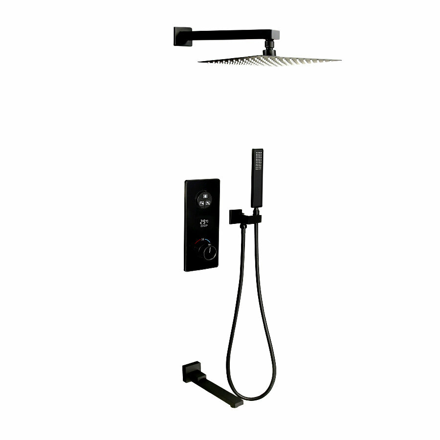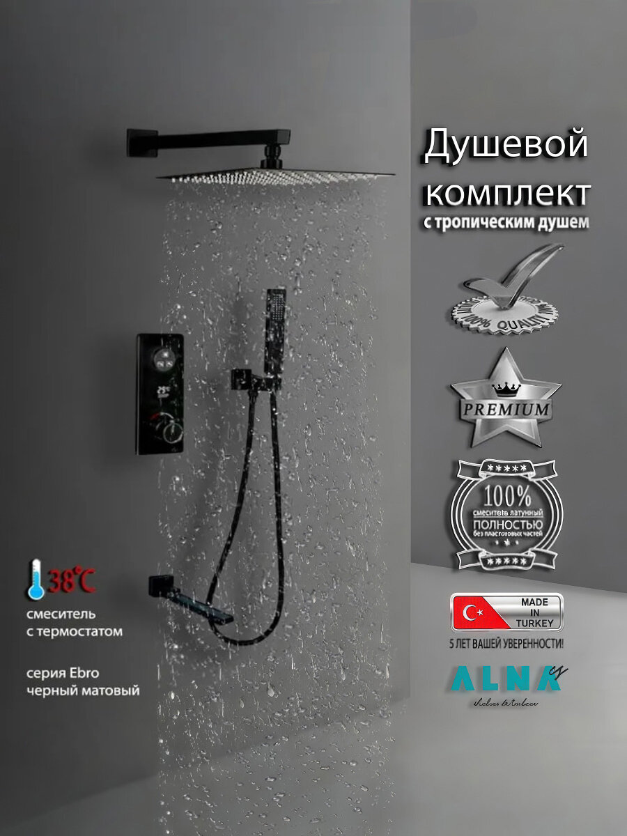 Встраиваемая душевая система Ebro ALMAes с тропическим душем и смесителем с термостатом на 3 потребителя черная матовая TVZ-8801 латунь: сравнение цен, характеристики, фото, актуальное наличие и цены.