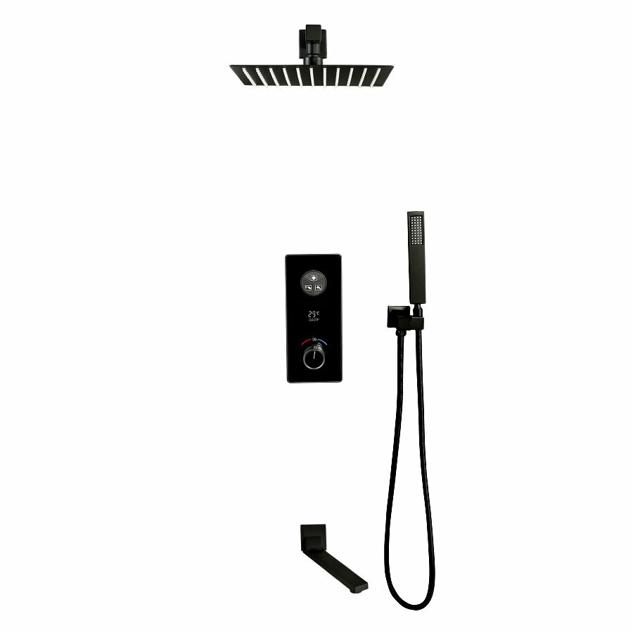 Купить Встраиваемая душевая система Ebro ALMAes с тропическим душем и смесителем с термостатом на 3 потребителя черная матовая TVZ-8801 латунь с доставкой по всей России.