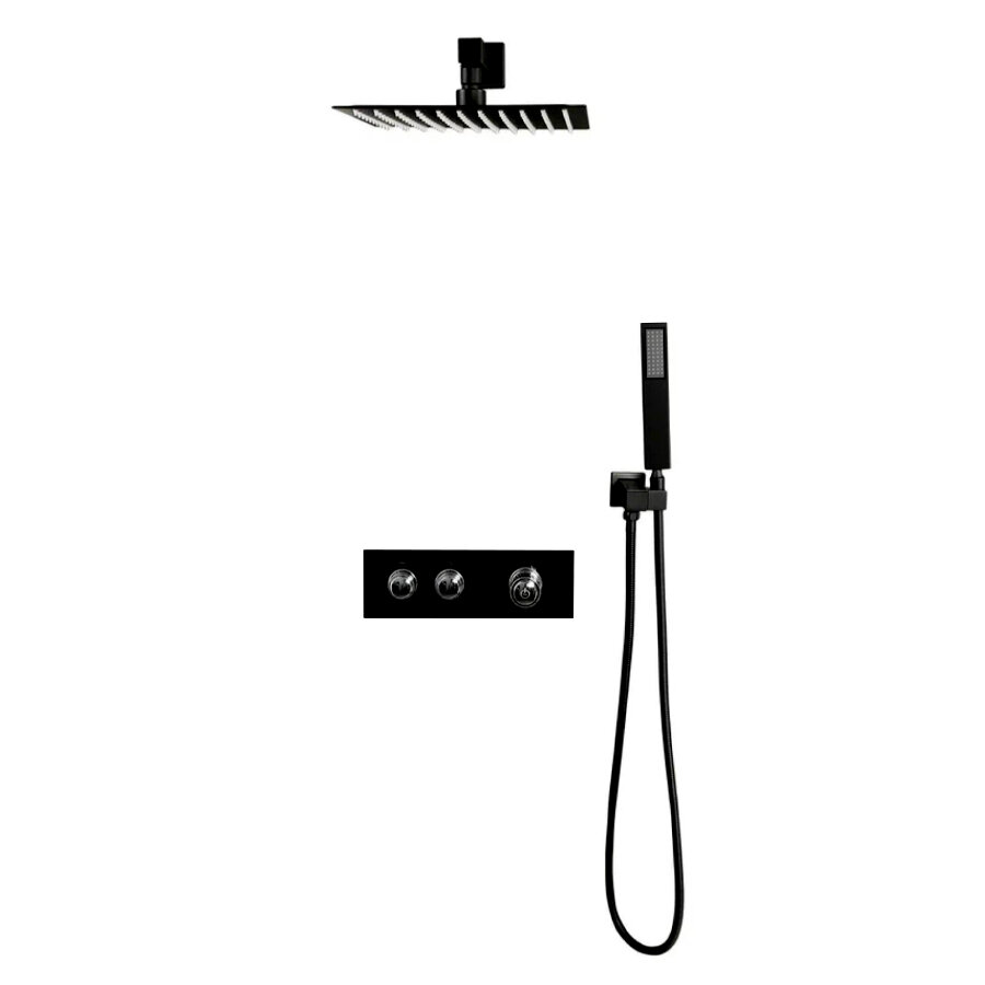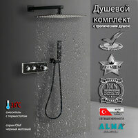 Купить Встраиваемая Душевая Система Со Смесителем С Термостатом И Тропическим Душем На 2 Потребителя Черная Матовая Olef TVZ-0898 ALMAes Латунь с доставкой по всей России.