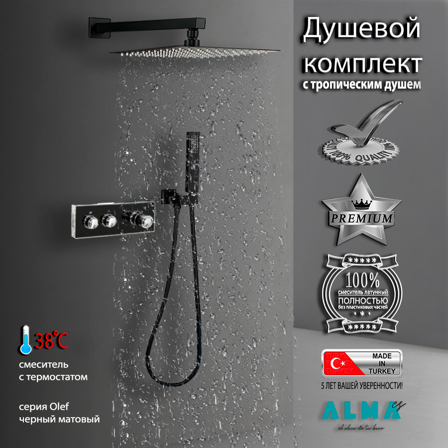 Встраиваемая Душевая Система Со Смесителем С Термостатом И Тропическим Душем На 2 Потребителя Черная Матовая Olef TVZ-0898 ALMAes Латунь: сравнение цен, характеристики, фото, актуальное наличие и цены.