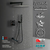 Купить Встраиваемая Душевая Система Со Смесителем С Термостатом И Тропическим Душем На 3 Потребителя Черная Матовая Khabur TVZ-0897 ALMAes Латунь с доставкой по всей России.