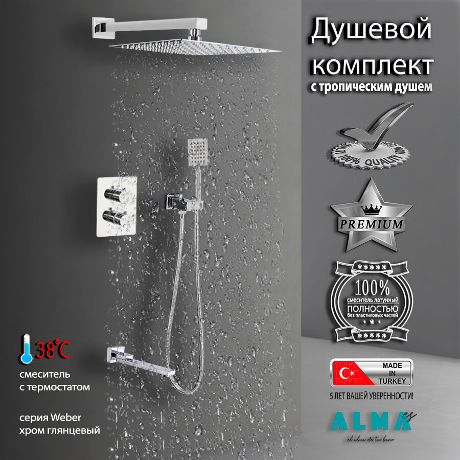 Купить Встраиваемая Душевая Система Со Смесителем С Термостатом И Тропическим Душем На 3 Потребителя Хром Weber TVZ-0806 ALMAes Латунь с доставкой по всей России.