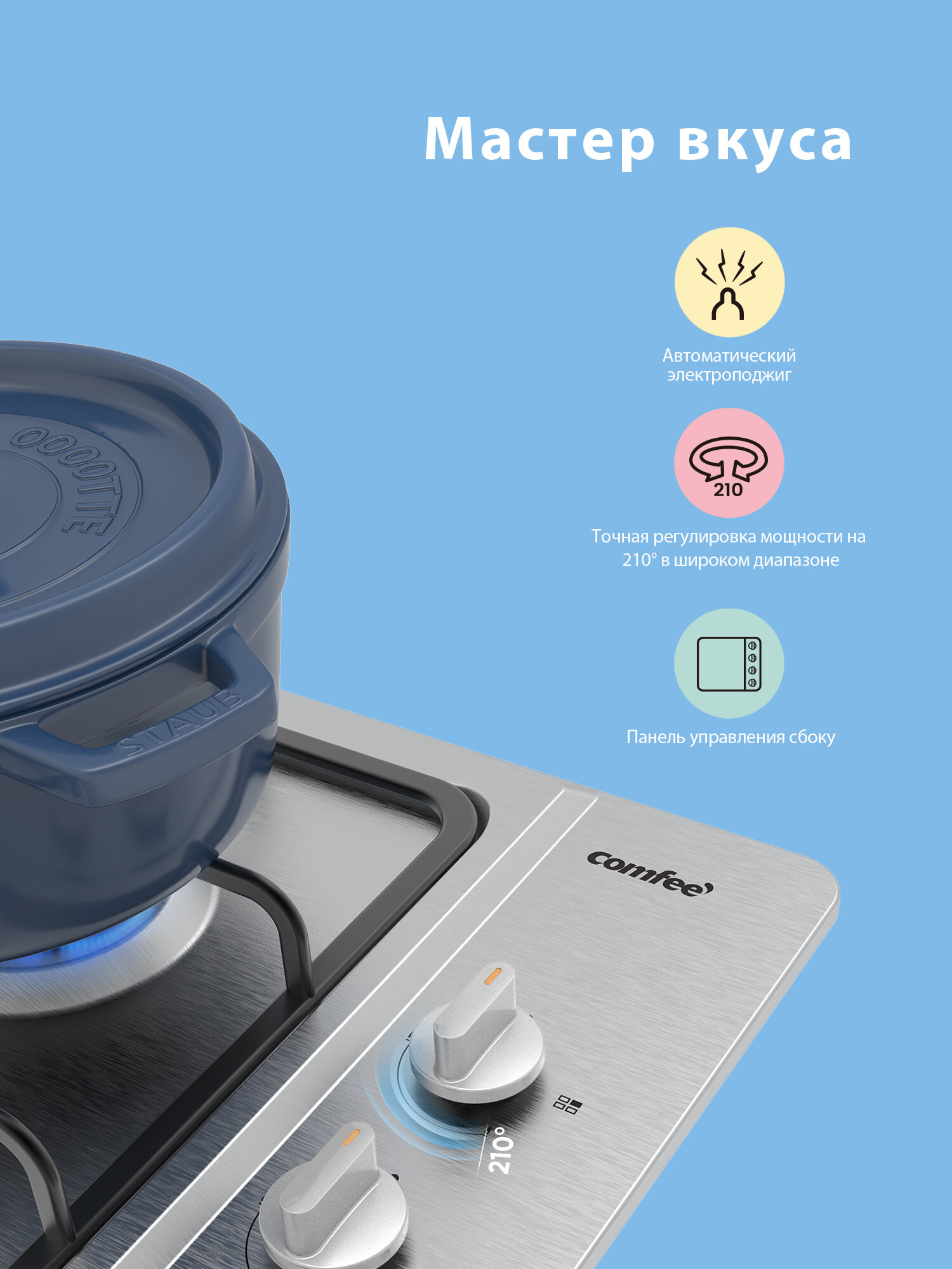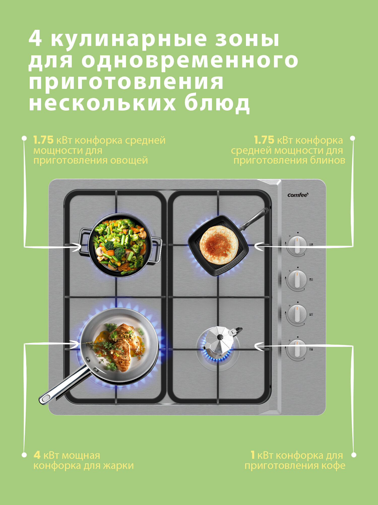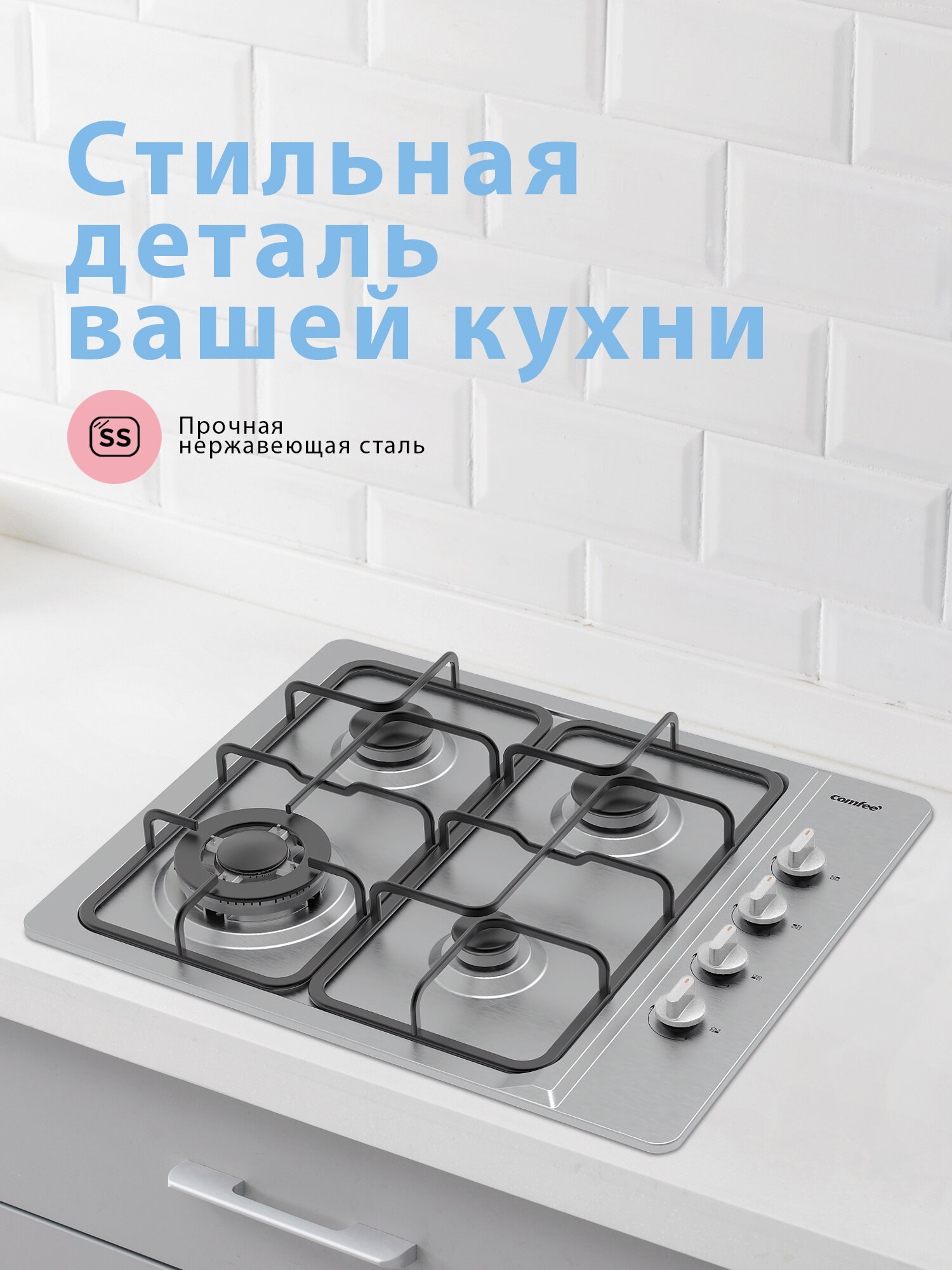 Встраиваемая газовая варочная панель Comfee CGH603X, 4 конфорки, WOK, газ-контроль, электроподжиг: сравнение цен, характеристики, фото, актуальное наличие и цены.