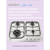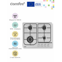 Купить Газовая варочная панель Comfee CGH610X, 4 конфорки, WOK конфорка, нержавеющая сталь, электроподжиг, газ-контроль с доставкой по всей России.