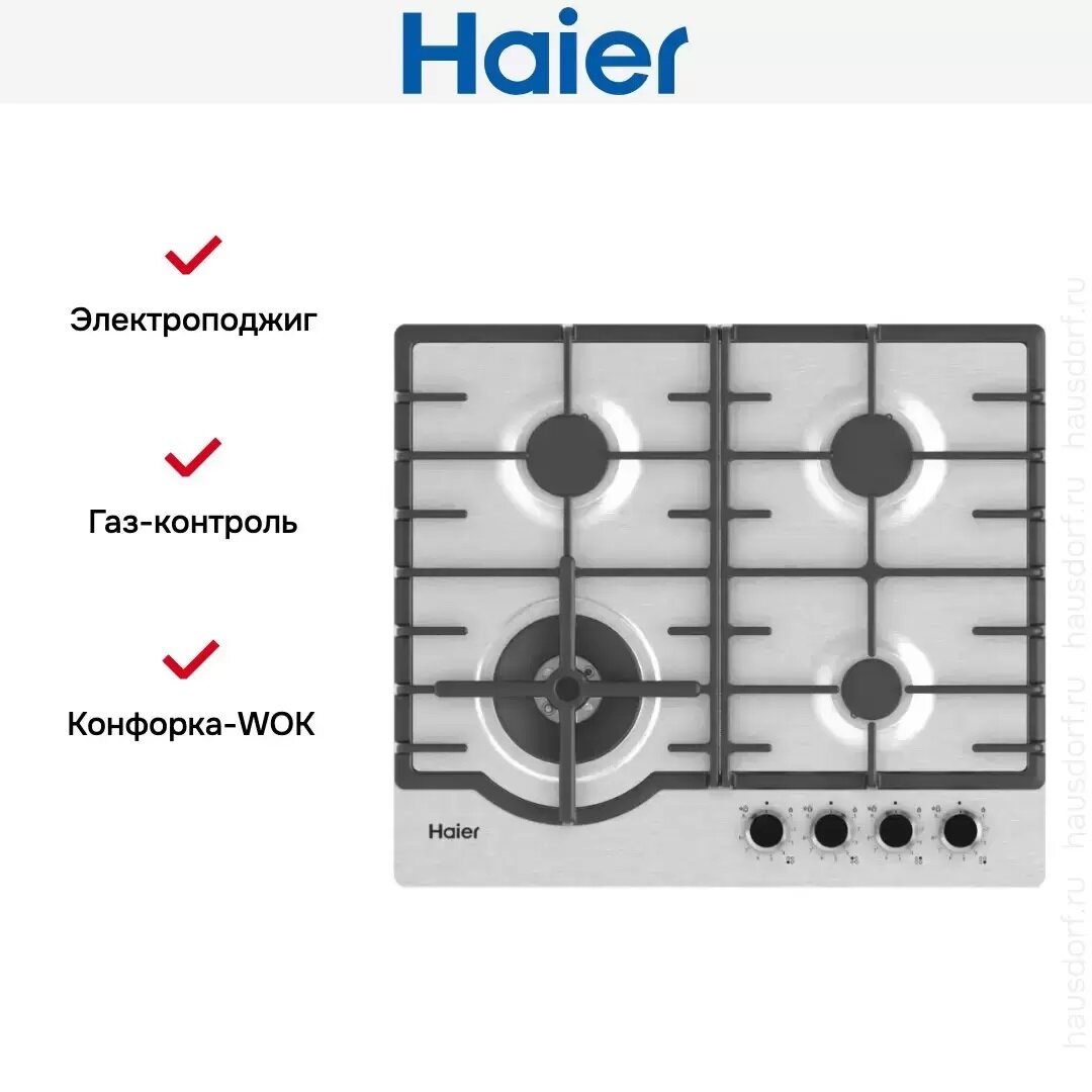 Купить Встраиваемая газовая варочная панель Haier HHX-M64ROVX с доставкой по всей России.
