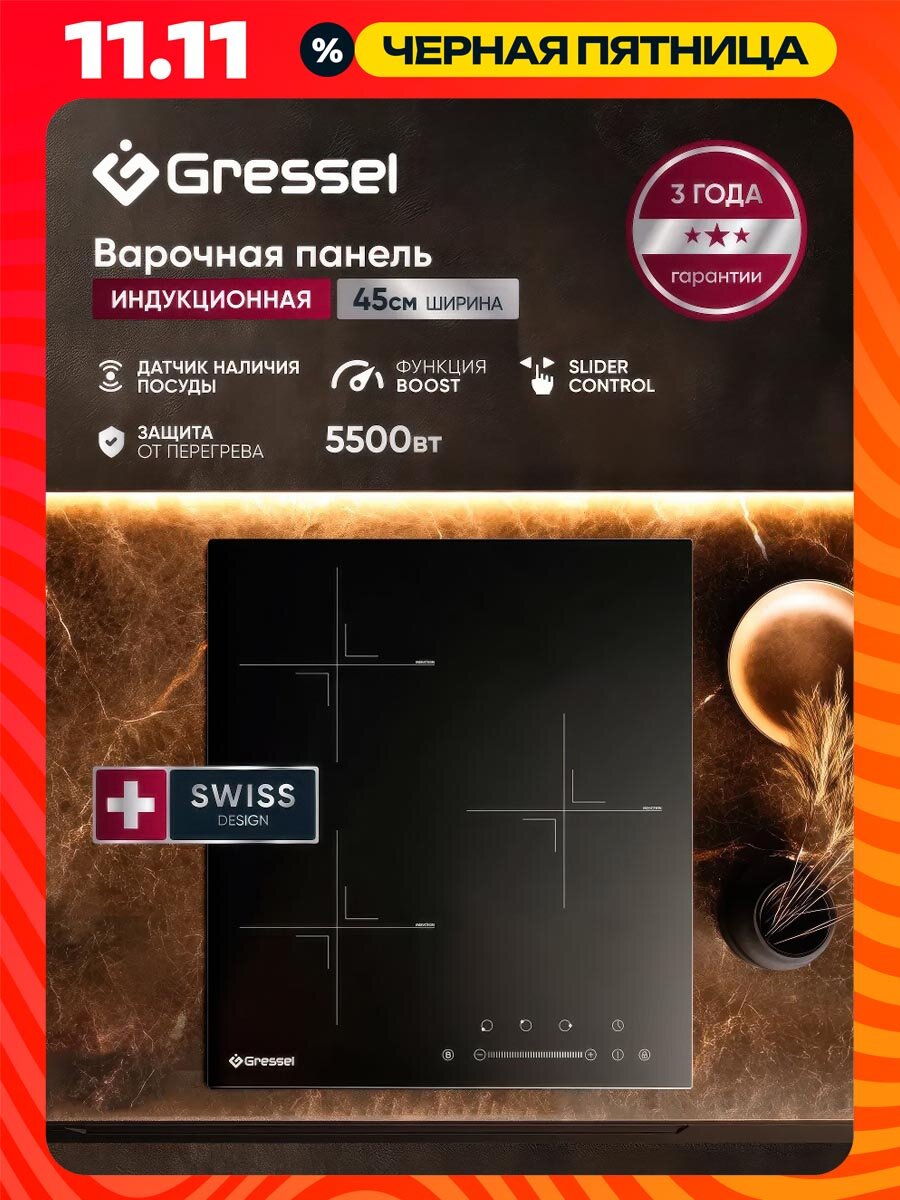 Встраиваемая индукционная варочная панель GRESSEL U45I73S001, 45 см, 5500Вт, Slider control: сравнение цен, характеристики, фото, актуальное наличие и цены.
