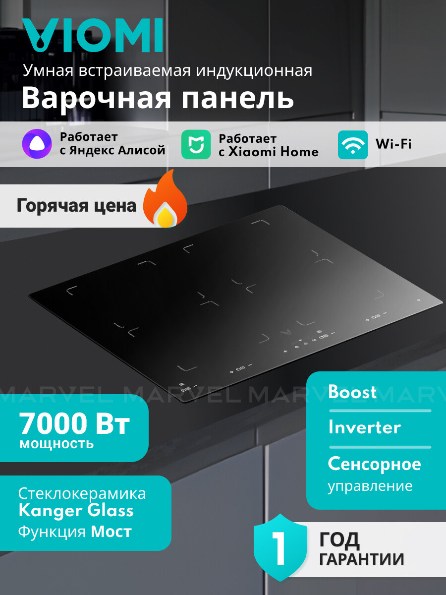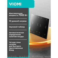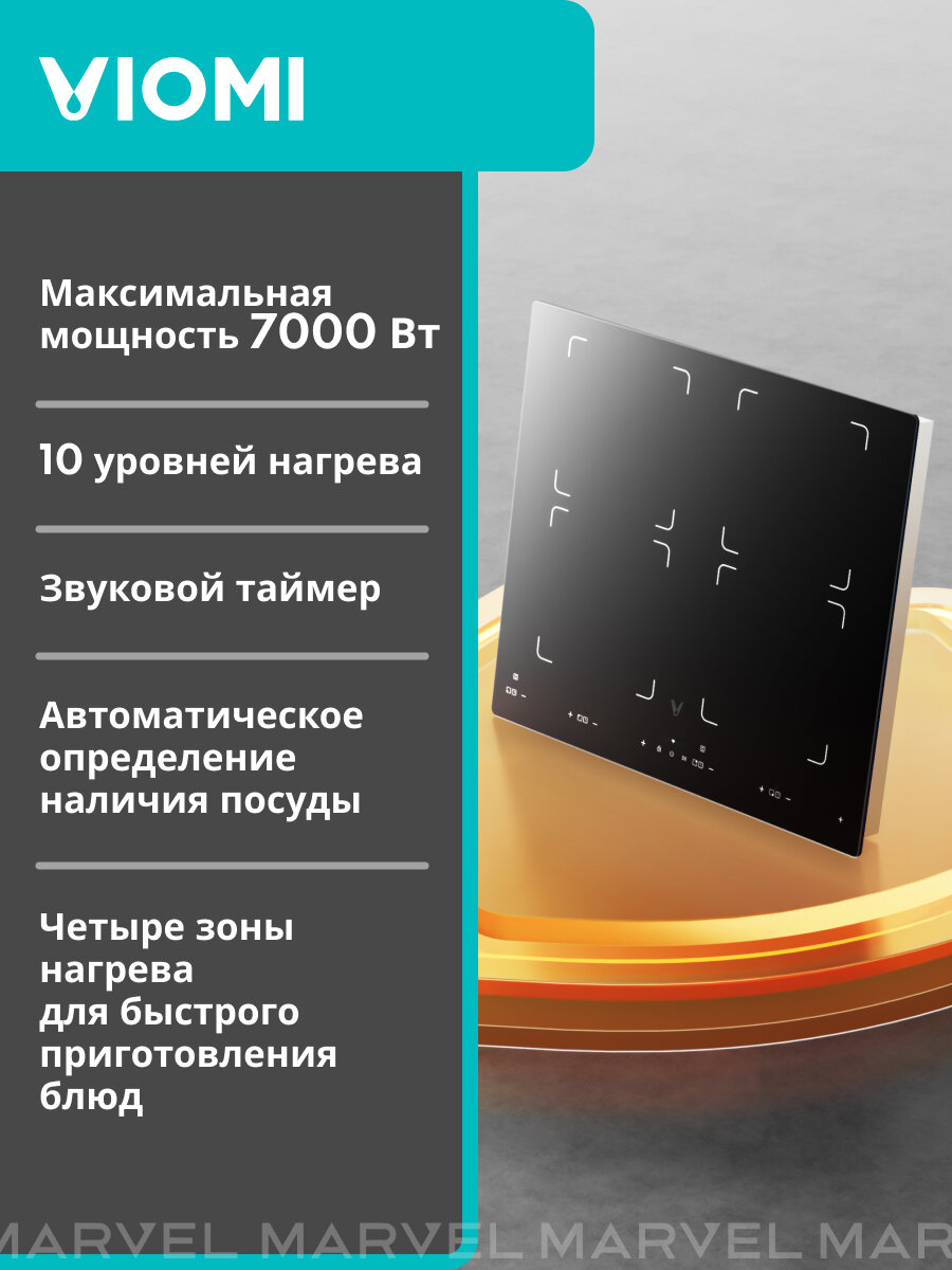 Встраиваемая индукционная варочная панель Viomi VBG702, 7000 Вт, 59 см, 4 конфорки boost мост таймер 10 уровней мощности, стеклокерамика Kanger Glass, модификация 2024 года, черный: сравнение цен, характеристики, фото, актуальное наличие и цены.
