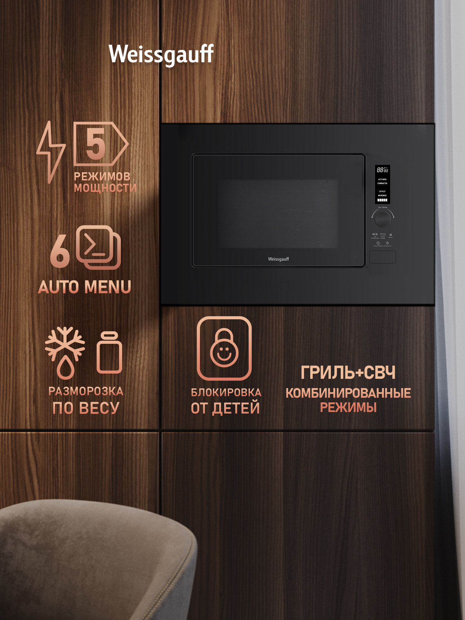 Встраиваемая инверторная микроволновая печь без поворотного стола Weissgauff HMT-206 Inverter Grill, Объём 20 л, Гриль: сравнение цен, характеристики, фото, актуальное наличие и цены.