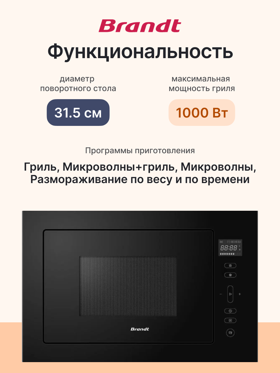 Купить Встраиваемая микроволновая печь BRANDT BMG2120B, официальная гарантия с доставкой по всей России.
